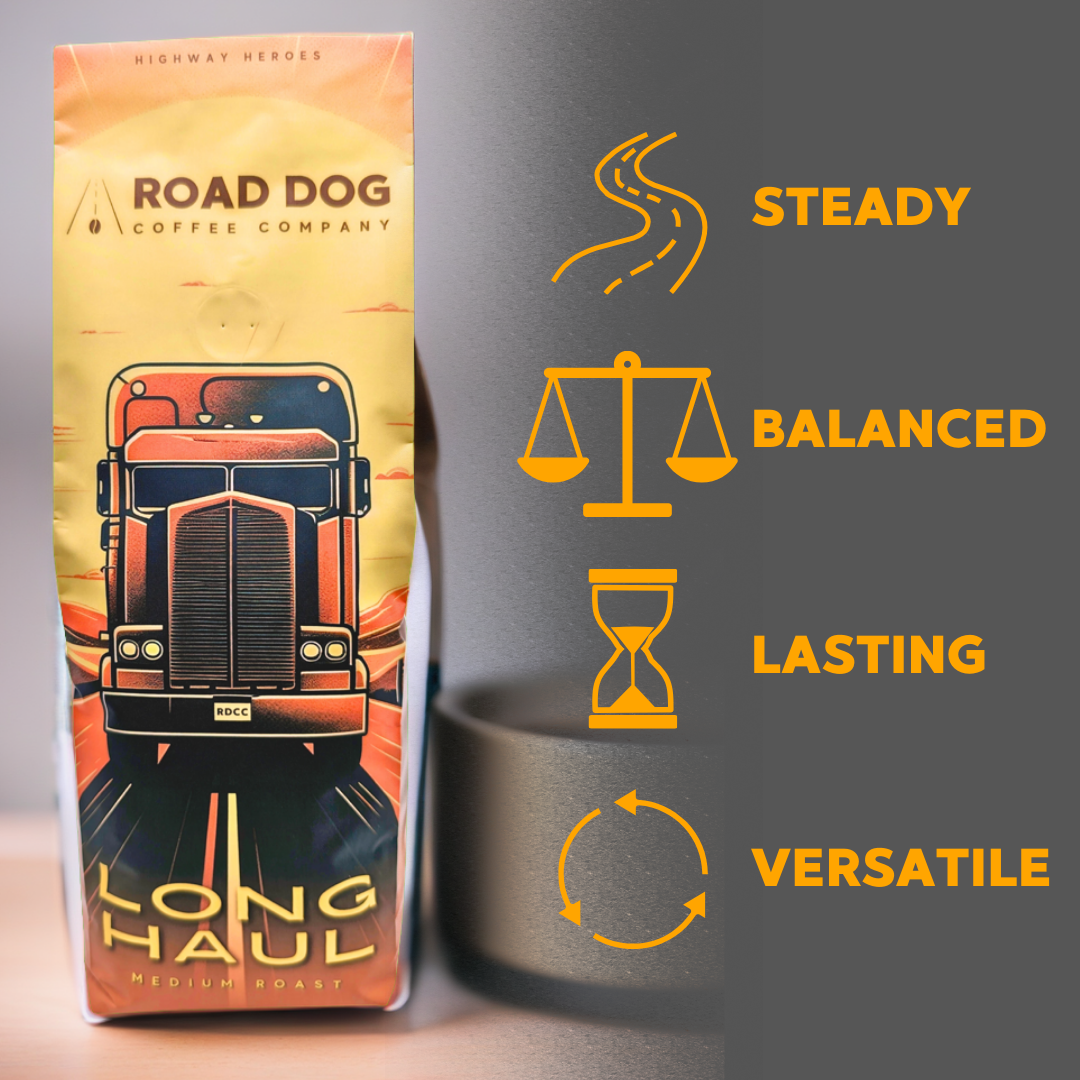 This Colombian medium roast offers a balanced and robust flavor profile with dark chocolate and cocoa notes that fuels your spirit for the long journey ahead. Whether you're delivering freight or just tackling a marathon workday, Long Haul helps you power through every mile with unwavering determination.